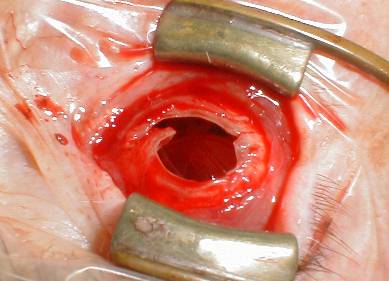 ball. The sclera is closed with 5/0 virryl. The conjunctiva is closed with
