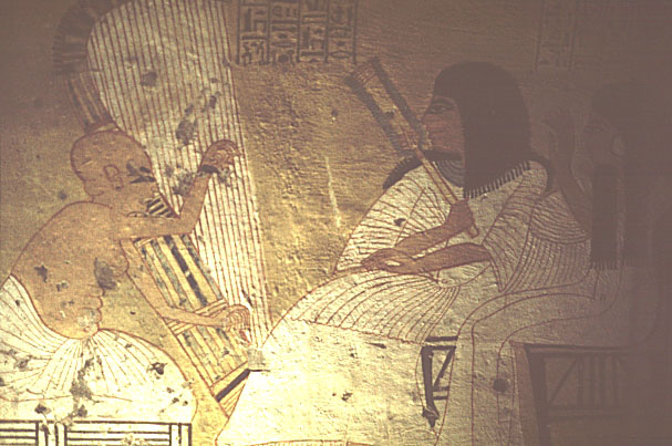 Inherkhau, was the foreman of the artisans who lived during the 20th Dynasty during the time of Ramesses III and IV at Deir el Medineh. He was an overseer of the craftsmen of the tombs in the Valley of the Kings. Wall decoration from the Tomb of Inherkhau in the necropolis at Deir el-Medina. |