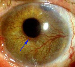 What are the abnormalities in the above specimen? Answer 1. Closure of the trabecular meshwork from anterior synechiae. 2. Presence of abnormal vessels on the anterior iris stroma 3. Contraction of the iris causing ectopia uvea 4. Lacy vacuolation of the pigmented layer on the posterior surface of the iris. (see picture below for explanations) What is the diagnosis? . Answer Proliferative diabetic retinopathy with rubeosis iridis and angle-closure glaucoma. Although other proliferative disorders such as ischaemic central retinal vein occlusion may give the same appearance, the lacy vacuolation is characteristic of poorly controlled diabetes mellitus.